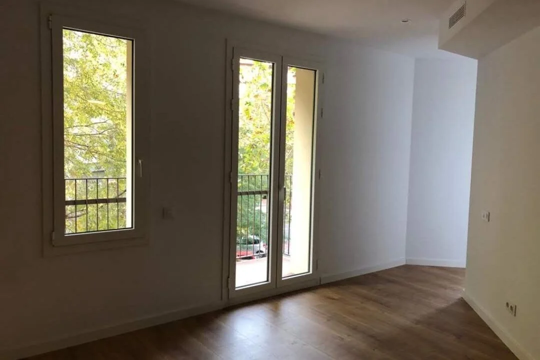 En otro de los pisos de este mismo edificio en el corazón de Barcelona, esta habitación vacía poco nos dice sobre sus dimensiones. El ojo humano necesita referencias para hacerse una idea de las proporciones y para ello los muebles son imprescindibles . Para alguien poco acostumbrado, podría parecer imposible que en esta habitación cupiera una cama de 1,35 y un armario. Evitando este tipo de dudas, aceleras cualquier proceso de venta o alquiler. Alquilado.